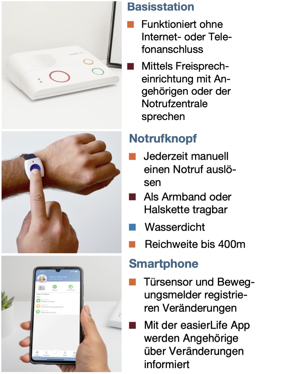 Wir möchten Ihnen mit dem neuen easierLife HOME mehr Sicherheit zuhause bieten. Im Gegensatz zum klassischen Hausnotruf erkennt der smarte Notruf selbstständig Notsituationen und bietet somit mehr Sicherheit bei bestimmten Lebenssituationen und Krankheitsbildern.